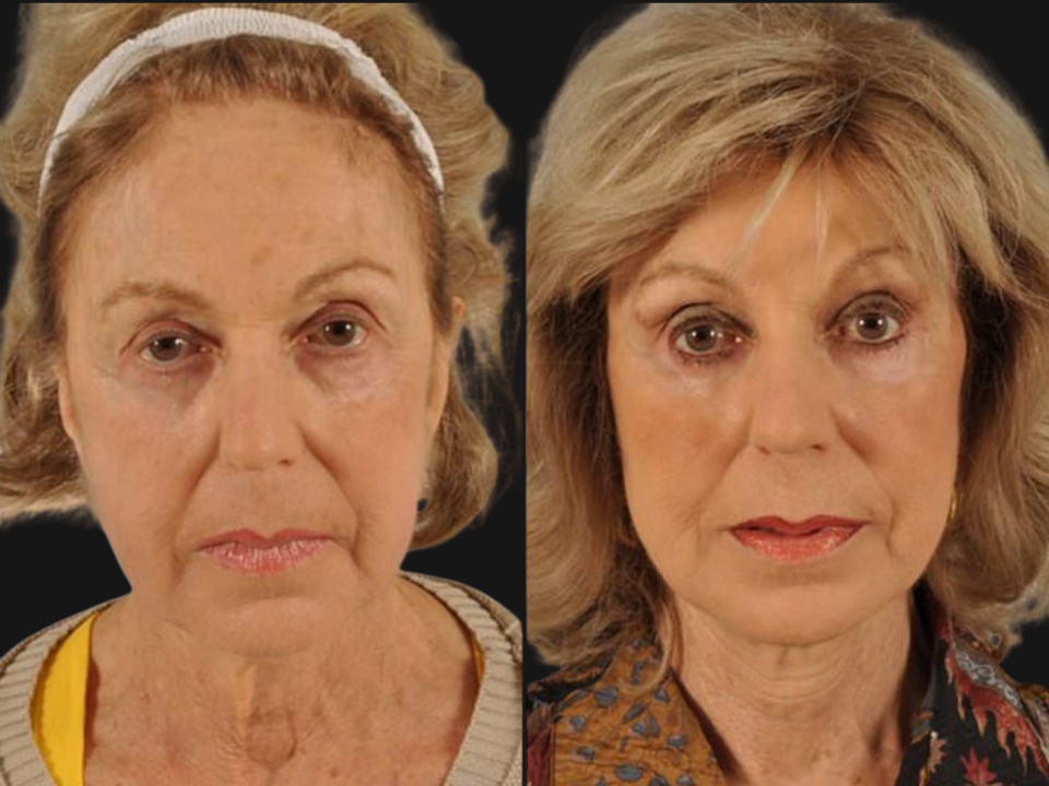 69 year old female, Upper lid blepharoplasty, lower lid blepharoplasty, endoscopic browlift, midface lift, laser full face, facial liposculpture.