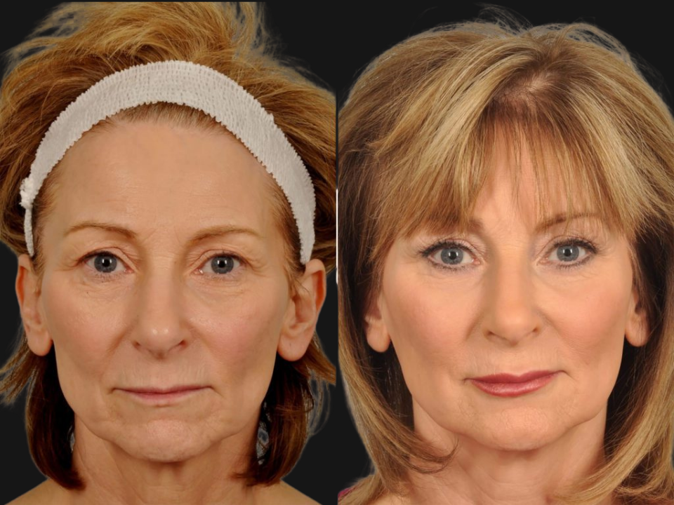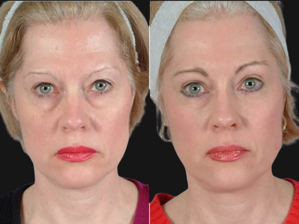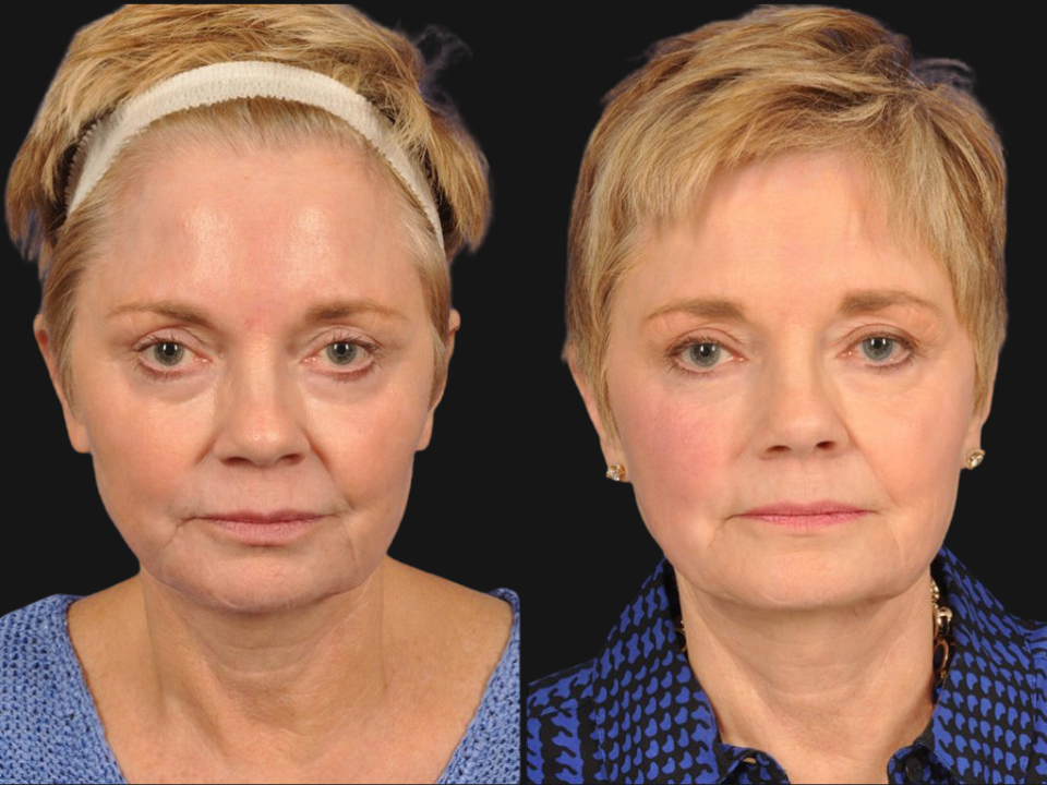 Before and After midface-lift, Endoscopic brow lift, Liposculpture, Lower blepharoplasty, Eco2 resurfacing lower eyelids, and Filler injections perioral.
