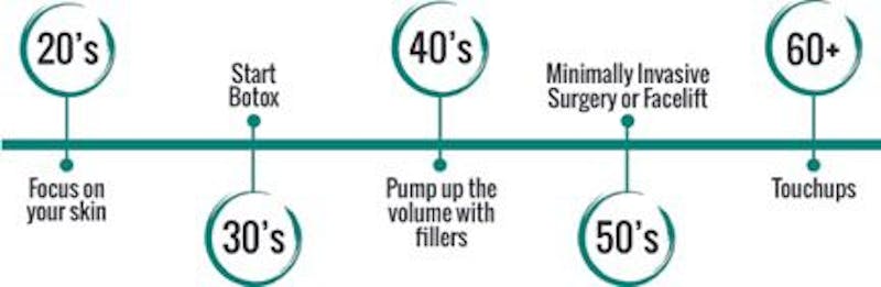 So…if you’re wearing your sunscreen, and not smoking…bravo! You can also consider the following timeline I put together to try to stay ahead of the aging curve.